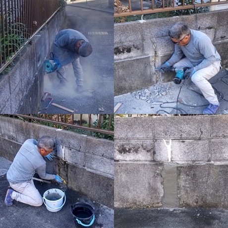 ひびの発生しているコンクリとブロックの塀を補修いたしました。